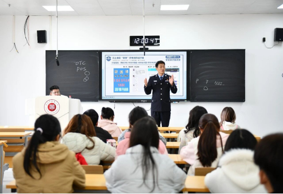 学校打破传统集中式宣传局限,与公安部门深度协作,秉持 “不漏一班、不落一人” 原则,将反诈课堂直接搬进每一间教室。百余名公安民警组成 “反诈讲师团”,分成多个宣讲小组深入教学楼开展 “扫楼式” 宣讲,累计开设 170 余堂反诈专题课,实现了全校学子反诈宣传全覆盖。针对中医药学子学习生活特点,学校提前与公安部门沟通对接,梳理学子易遭遇的 “刷单返利”“网络游戏虚假交易” 等高发骗局,确保宣讲内容精准对接学生需求。
